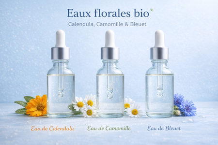 Eau florale de Calendula* (Calendula officinalis flower water), Eau florale de Camomille* et Eau florale de Bleuet * (Centaurea cyanus flower water) (Chamaemelum nobile flower water)